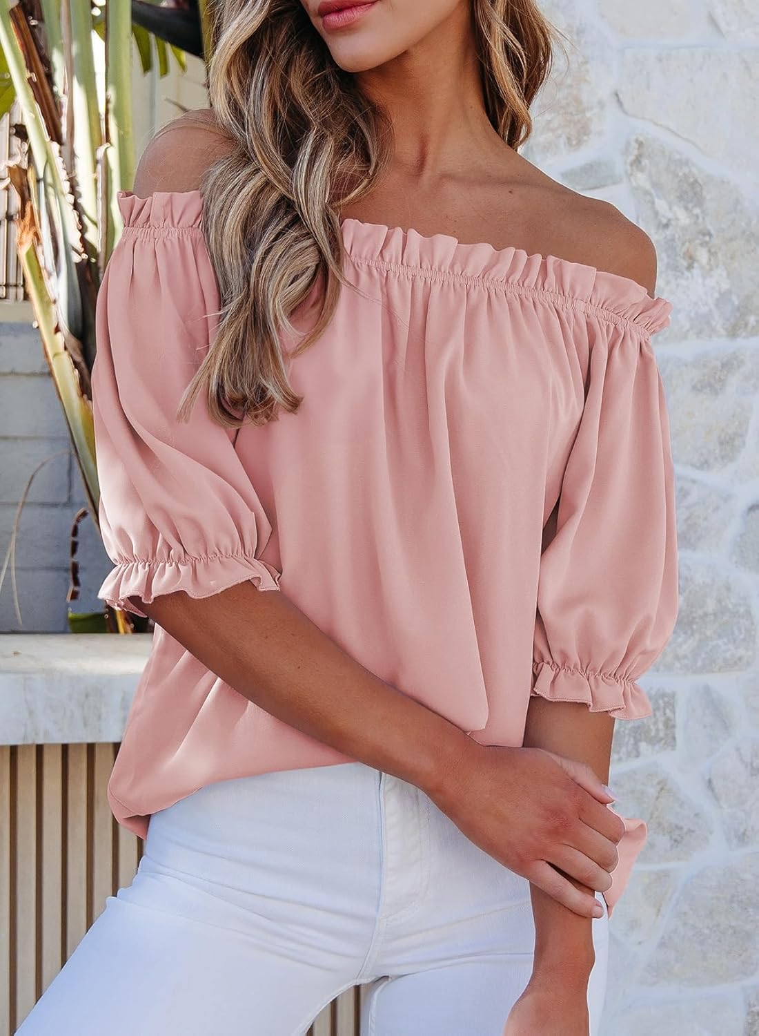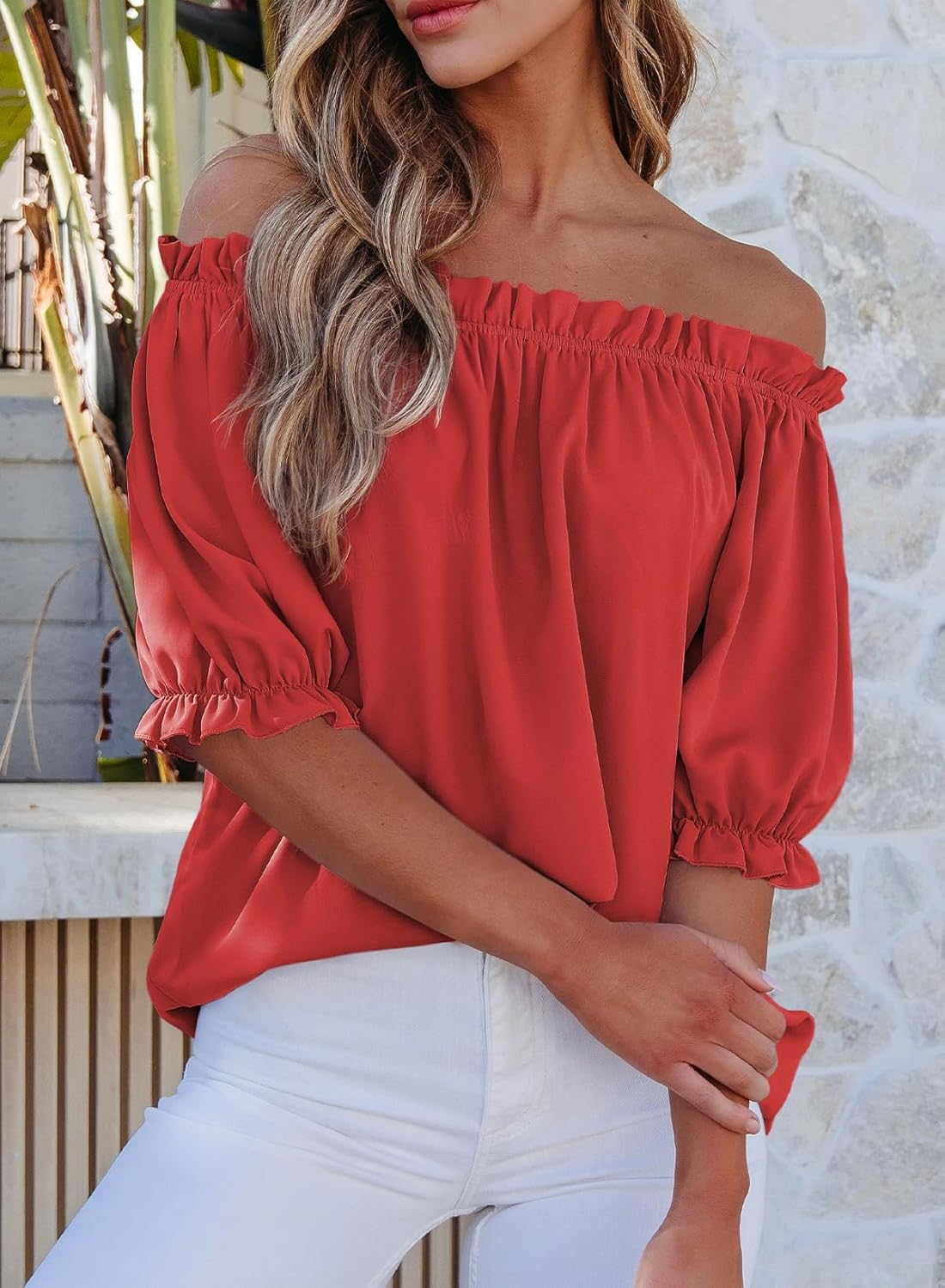 Womens Tops Off The Shoulder Blouses for Women Dressy Casual Cute Puff Sleeve T Shirts Fashion 2025
