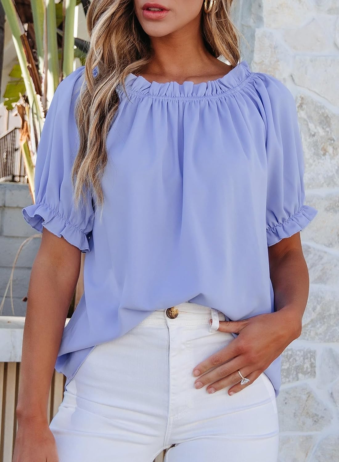 Womens Tops Cute Puff Sleeve Blouses for Women Fashion 2025